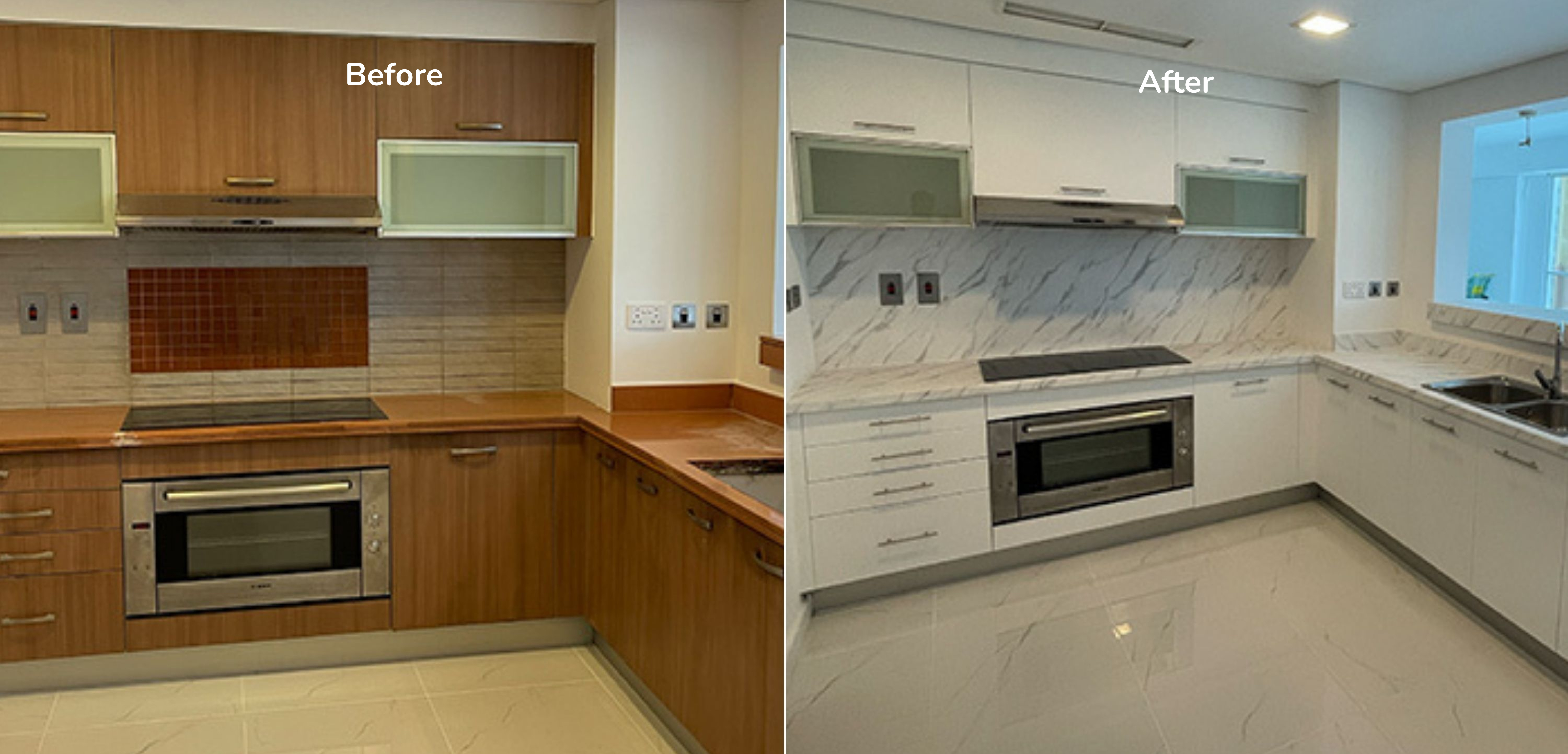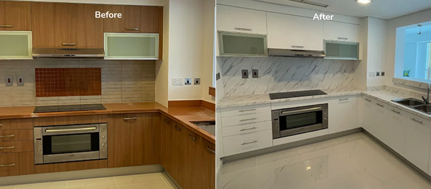 Our partners take pride in delivering a swift and hassle-free experience for our clients. The full kitchen wrapping installation process typically takes a day to complete, allowing you to witness a remarkable transformation in an efficient manner. This quick turnaround sets us apart from lengthy renovation processes, providing you with a fresh and revitalized space without the inconvenience of extended timelines.